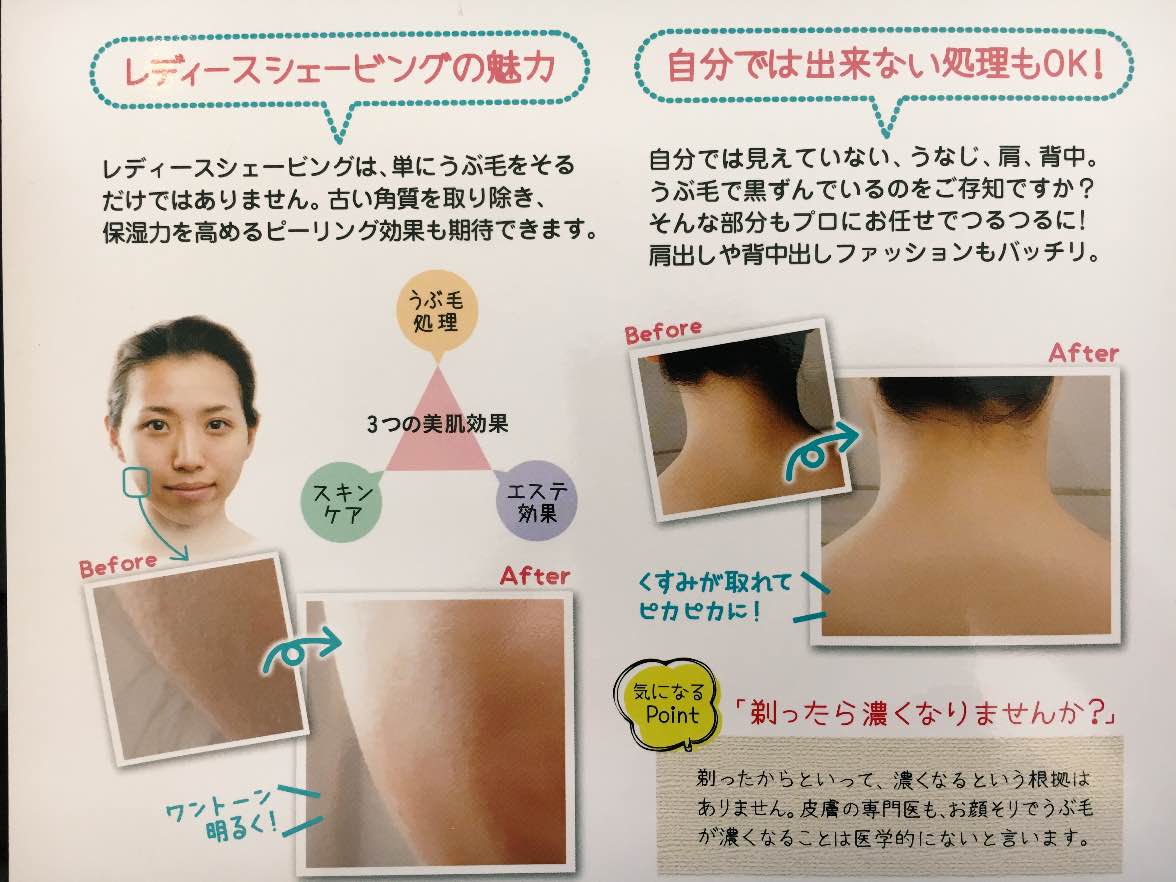 レディースシェービングもできますよ!!