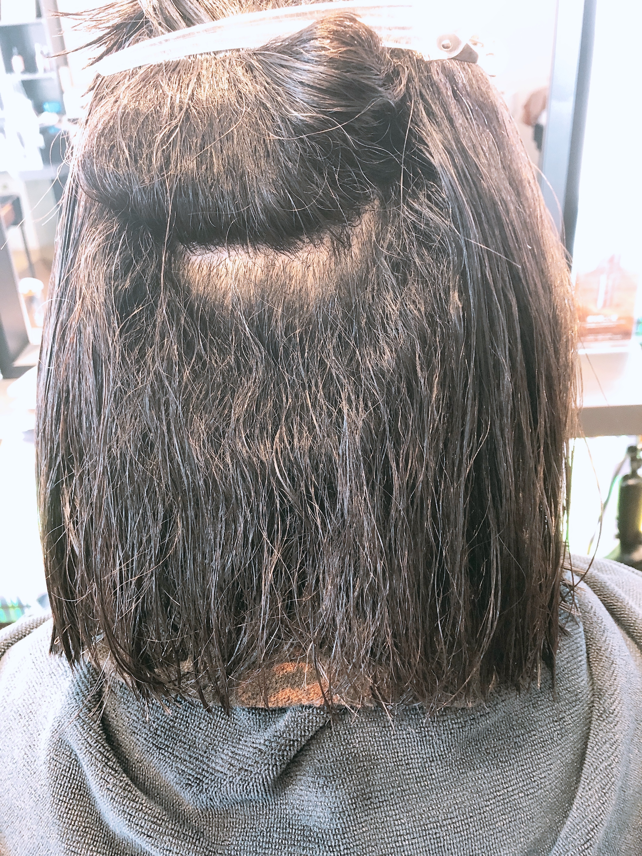 中間毛先は何回かやっているから伸びているだけです。
