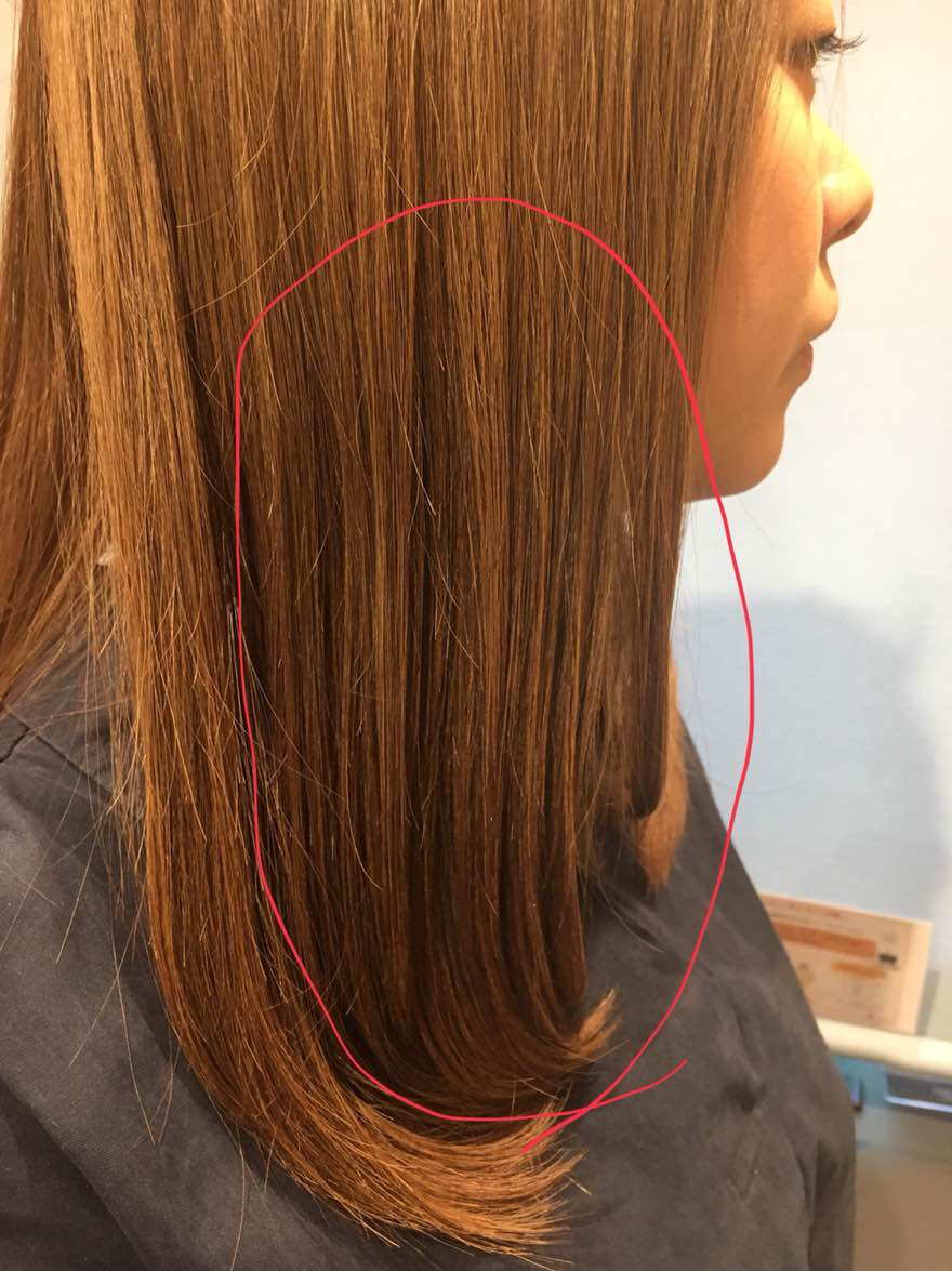 アイロンで毛先はパサパサです。